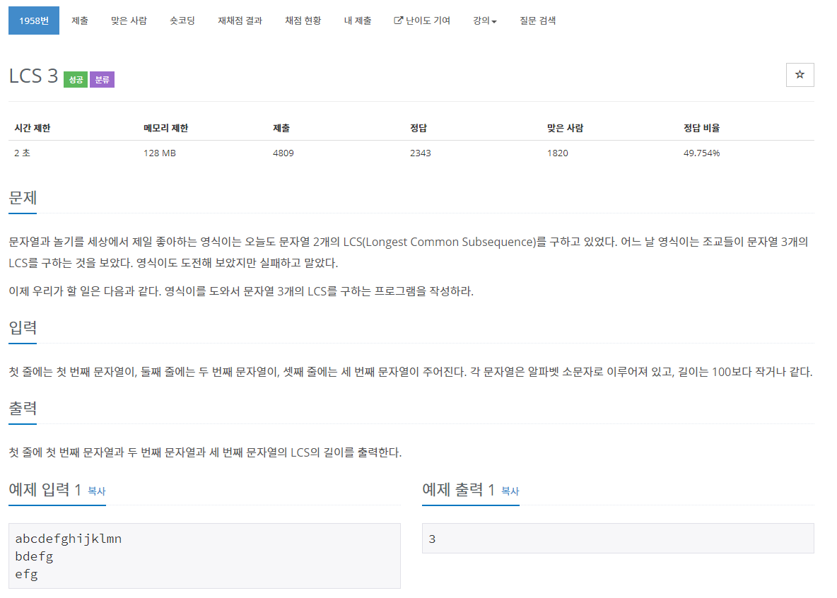 위의 두 문제에 이어서 LCS 3 문제이다.