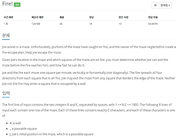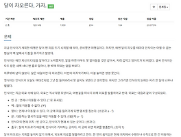 전체 글 (93) 썸네일형 리스트형 [BOJ]11723번 : 집합 https://www.acmicpc.net/problem/11723 11723번: 집합 첫째 줄에 수행해야 하는 연산의 수 M (1 ≤ M ≤ 3,000,000)이 주어진다. 둘째 줄부터 M개의 줄에 수행해야 하는 연산이 한 줄에 하나씩 주어진다. www.acmicpc.net 분류 : 없음 더보기 import java.io.*; import java.math.*; import java.util.*; class Myscanner { BufferedReader br; StringTokenizer st; public Myscanner() { br = new BufferedReader(new InputStreamReader(System.in)); } String next() { while (st == null .. [BOJ]2206번 : 벽 부수고 이동하기 https://www.acmicpc.net/problem/2206 2206번: 벽 부수고 이동하기 N×M의 행렬로 표현되는 맵이 있다. 맵에서 0은 이동할 수 있는 곳을 나타내고, 1은 이동할 수 없는 벽이 있는 곳을 나타낸다. 당신은 (1, 1)에서 (N, M)의 위치까지 이동하려 하는데, 이때 최단 경로 www.acmicpc.net 분류 : BFS 더보기 import java.io.*; import java.math.*; import java.util.*; class Myscanner { BufferedReader br; StringTokenizer st; public Myscanner() { br = new BufferedReader(new InputStreamReader(System.in)); }.. [BOJ]3055번: 탈출 https://www.acmicpc.net/problem/3055 3055번: 탈출 사악한 암흑의 군주 이민혁은 드디어 마법 구슬을 손에 넣었고, 그 능력을 실험해보기 위해 근처의 티떱숲에 홍수를 일으키려고 한다. 이 숲에는 고슴도치가 한 마리 살고 있다. 고슴도치는 제 www.acmicpc.net 분류 : BFS , 시뮬레이션 더보기 import java.io.*; import java.math.*; import java.util.*; class Myscanner{ BufferedReader br; StringTokenizer st; public Myscanner(){ br = new BufferedReader(new InputStreamReader(System.in)); } String next(){.. [BOJ]1194번 : 달이 차오른다, 가자. https://www.acmicpc.net/problem/1194 1194번: 달이 차오른다, 가자. 첫째 줄에 미로의 세로 크기 N과 가로 크기 M이 주어진다. (1 ≤ N, M ≤ 50) 둘째 줄부터 N개의 줄에 미로의 모양이 주어진다. 같은 타입의 열쇠가 여러 개 있을 수 있고, 문도 마찬가지이다. 그리고, www.acmicpc.net 분류 : BFS 더보기 import java.io.*; import java.math.*; import java.util.*; class MyScanner { BufferedReader br; StringTokenizer st; public MyScanner() { br = new BufferedReader(new InputStreamReader(System.in)).. [BOJ]5427번 : 불 https://www.acmicpc.net/problem/5427 5427번: 불 상근이는 빈 공간과 벽으로 이루어진 건물에 갇혀있다. 건물의 일부에는 불이 났고, 상근이는 출구를 향해 뛰고 있다. 매 초마다, 불은 동서남북 방향으로 인접한 빈 공간으로 퍼져나간다. 벽에 www.acmicpc.net 분류 : BFS, 최단 경로 더보기 import java.io.*; import java.math.*; import java.util.*; class MyScanner { BufferedReader br; StringTokenizer st; public MyScanner() { br = new BufferedReader(new InputStreamReader(System.in)); } String next().. [BOJ]4179번 : Fire! https://www.acmicpc.net/problem/4179 4179번: 불! 입력의 첫째 줄에는 공백으로 구분된 두 정수 R과 C가 주어진다. 단, 1 ≤ R, C ≤ 1000 이다. R은 미로 행의 개수, C는 열의 개수이다. 다음 입력으로 R줄동안 각각의 미로 행이 주어진다. 각각의 문 www.acmicpc.net 분류 : BFS , DFS, 다익스트라 알고리즘 더보기 import java.io.*; import java.math.*; import java.util.*; class MyScanner { BufferedReader br; StringTokenizer st; public MyScanner() { br = new BufferedReader(new InputStreamReader(Sy.. [BOJ]7569번 : 토마토 https://www.acmicpc.net/problem/7569 7569번: 토마토 첫 줄에는 상자의 크기를 나타내는 두 정수 M,N과 쌓아올려지는 상자의 수를 나타내는 H가 주어진다. M은 상자의 가로 칸의 수, N은 상자의 세로 칸의 수를 나타낸다. 단, 2 ≤ M ≤ 100, 2 ≤ N ≤ 100, www.acmicpc.net 분류 : BFS 더보기 import java.io.*; import java.math.*; import java.util.*; class MyScanner { BufferedReader br; StringTokenizer st; public MyScanner() { br = new BufferedReader(new InputStreamReader(System.in)); } .. [BOJ]10974번 : 모든 순열 https://www.acmicpc.net/problem/10974 10974번: 모든 순열 N이 주어졌을 때, 1부터 N까지의 수로 이루어진 순열을 사전순으로 출력하는 프로그램을 작성하시오. www.acmicpc.net 분류 : 순열 더보기 import java.io.*; import java.math.*; import java.util.*; class MyScanner { BufferedReader br; StringTokenizer st; public MyScanner() { br = new BufferedReader(new InputStreamReader(System.in)); } String next() { while (st == null || !st.hasMoreElements()) { try.. 이전 1 ··· 8 9 10 11 12 다음